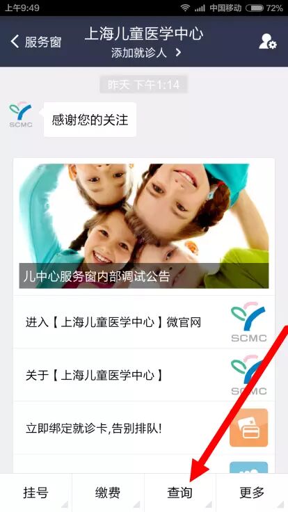 当日挂号,在家完成:不论是医保用户还是自费用户,都可以在家里(其实是任何地方)通过手机客户端挂号付费(目前仅限当天普通门诊),拿到就诊序号后,你可以看到实时的排队信息,然后笃悠悠的提前10到20个号到医院诊间直接就诊。(医保用户因政策限制,可能还需要稍微提前一会儿先到医院收费窗口划卡确认哦,但这样通常都能避开排队高峰时段。) 信息查询,一目了然:在医院完成的检查,如果结果当天不能出来,那么通过支付宝服务窗口可以随时了解进度;账单信息也可以方便的进行查询; 开通专家预约/付费,手机支付的同时能够得到准确的就诊时段和序号;诊间付费更加便捷,医生无论开检查单还是开药,付费信息即可推送到手机完成;等等 看完这些,是不是很鸡冻啊,那么闲言少叙,先做热身动作: 1,首先要有智能手机(⊙﹏⊙)b和支付宝账户(这个必须有) 2,手机上安装支付宝手机客户端,然后在服务窗内关注“上海儿童医学中心” 接下来要进行就诊卡绑定工作,至关重要哦: 3,在医院服务窗主界面点击“查询”--“个人信息”开始绑定卡号 4,如果从未来过儿中心,选择“申请就诊卡”;如果已经来过,选择“绑定就诊卡”,自费卡卡号为磁卡上的15位号码,医保卡有两种,也是以卡上的号码为准;如果有二娃和三娃(⊙o⊙)…,同理,系统允许一个账号内有3个孩子哦 再接下来就是挂号付费的过程了,这个属于你懂的,小编就不再赘述,关键是写的太多没人看~~~~(>_<)~~~~ 在当前手机客户端“诊间支付”还未开通的情况下,化验检查和药品费用支付最快的途径是自助挂号机,门诊一楼和二楼均有四台,通常都有志愿者帮助你完成(重要提醒:第一次使用需要二代身份证认证)。这样一来,挂号付费、检查付费、药品付费三个排队最多的流程你就可以完全无视了\(^o^)/~ |